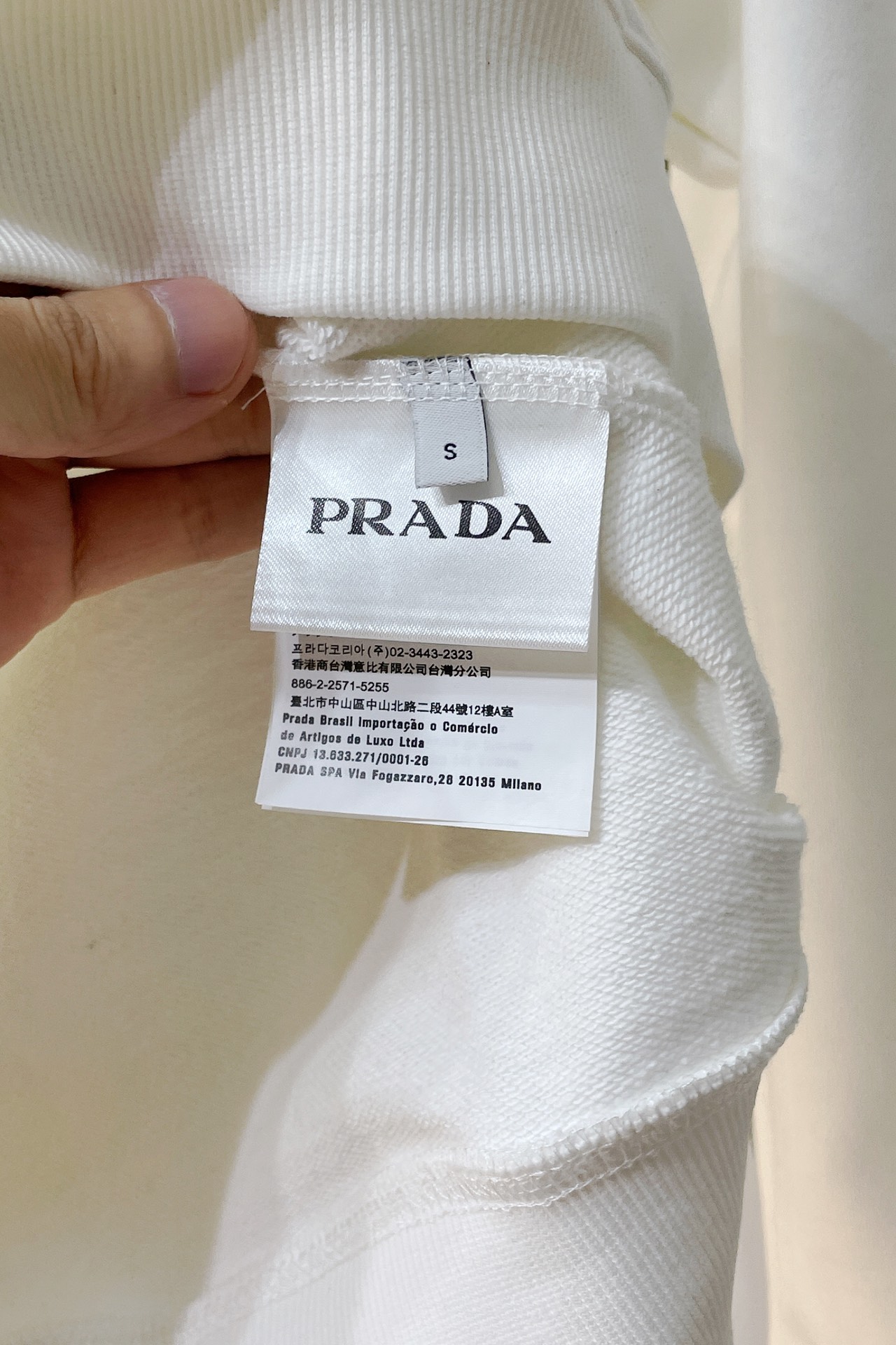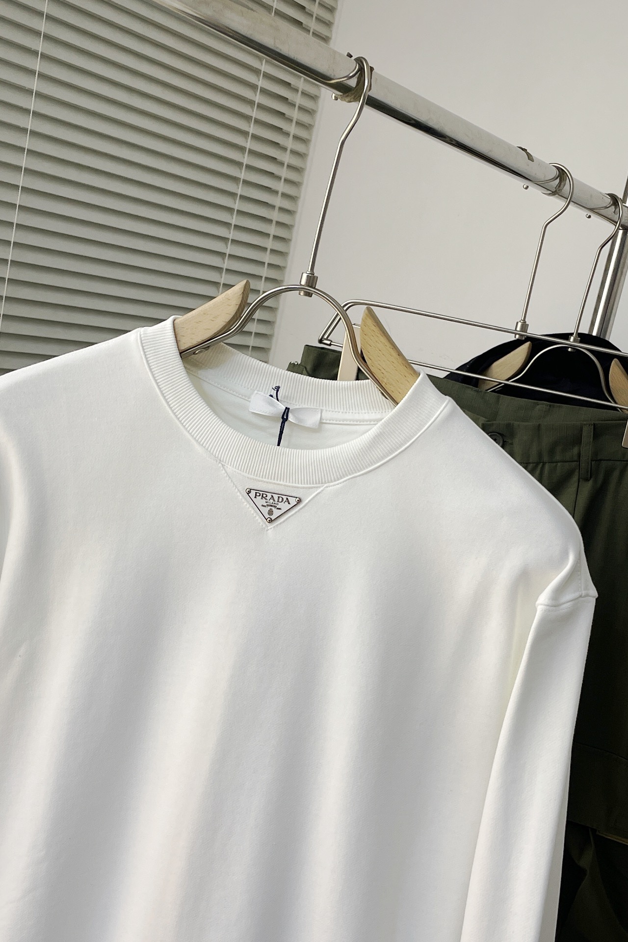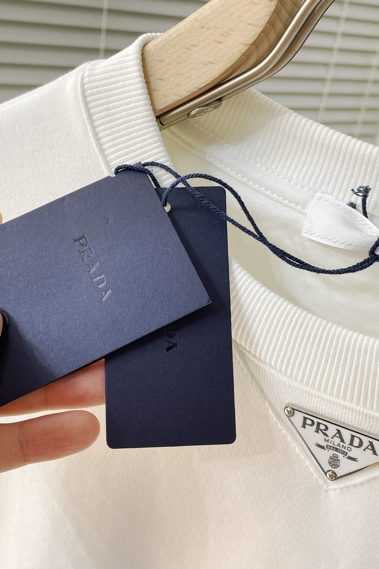这款衣服是AAAAA 1:1 质量 (非常棒). 使用了和原版一模一样的材料. 商标部分也保持了和普拉达/Prada一样. 图片拍摄是实物衣服拍摄, 您所收到的实物保证和我们图片一模一样.
