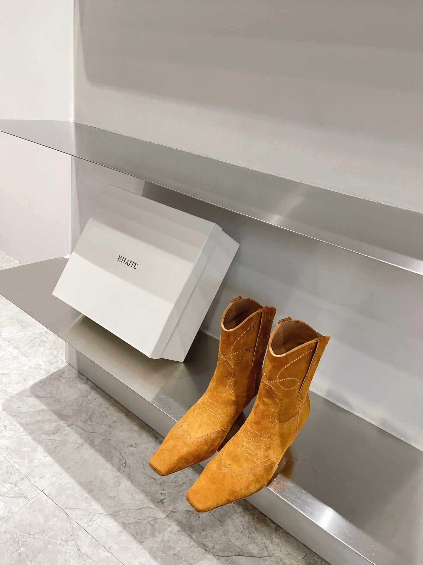 这款鞋子是AAAAA 1:1 质量 (非常棒). 使用了和原版一模一样的材料. 商标部分也保持了和Khaite一样. 图片拍摄是实物鞋子拍摄, 您所收到的实物保证和我们图片一模一样.