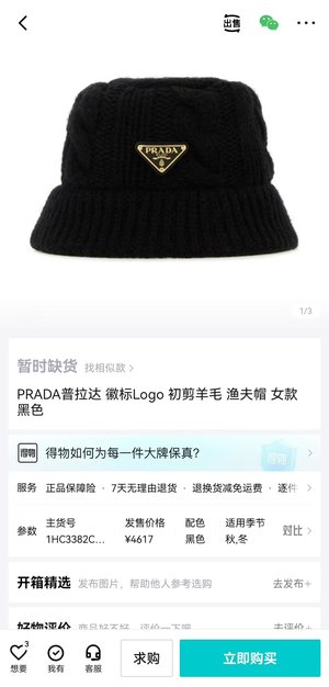 /帽子 来自于 普拉达/PRADA