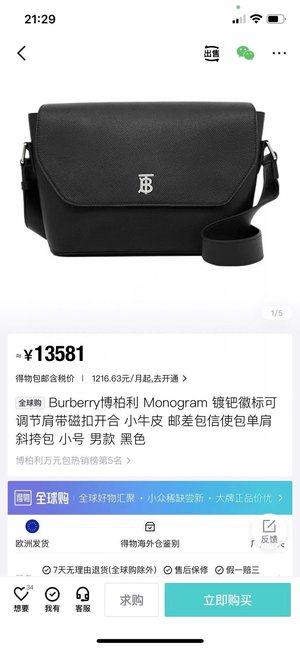 /包包 来自于 巴宝莉/BURBERRY